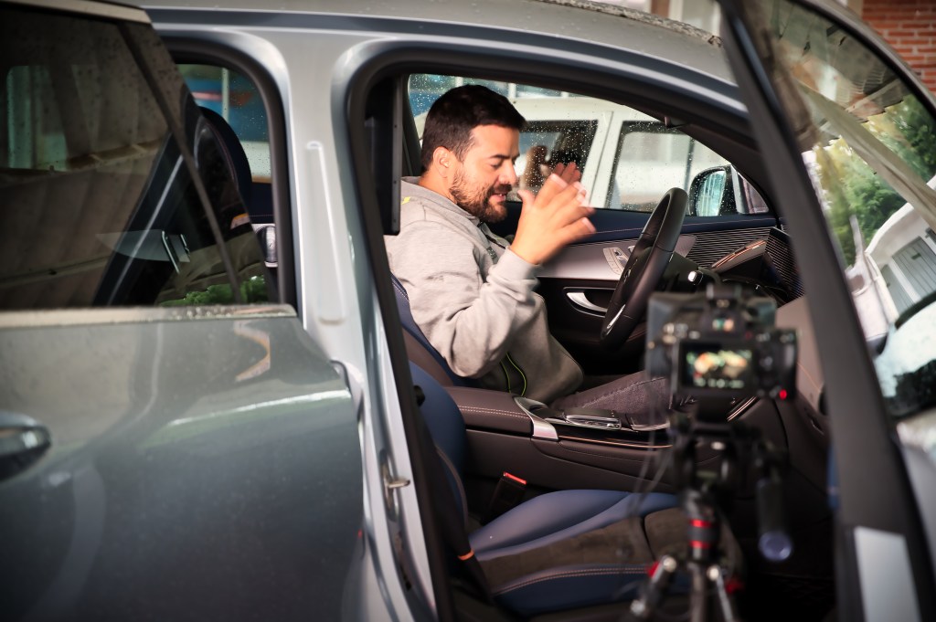 Inicio la prueba con el Mercedes EQC, antes de subir me explican que es una Edición especial “1886”, año en que Karl Benz obtuvo la patente para su primer vehículo a propulsión de gasolina. Nos enfilamos a la pista y en la primer recta meto el acelerador a fondo y me sorprende lo bien que responde, después un poco de curvas las cuales toma muy bien, se siente un auto seguro, en ningún momento sentí que perdiera el control con todo y que el pavimento esta mojado, en la segunda vuelta, ya con un poco de confianza, le exijo un poco mas y sigue respondiendo, hicieron muy buen trabajo en Mercedes con esta EQC.