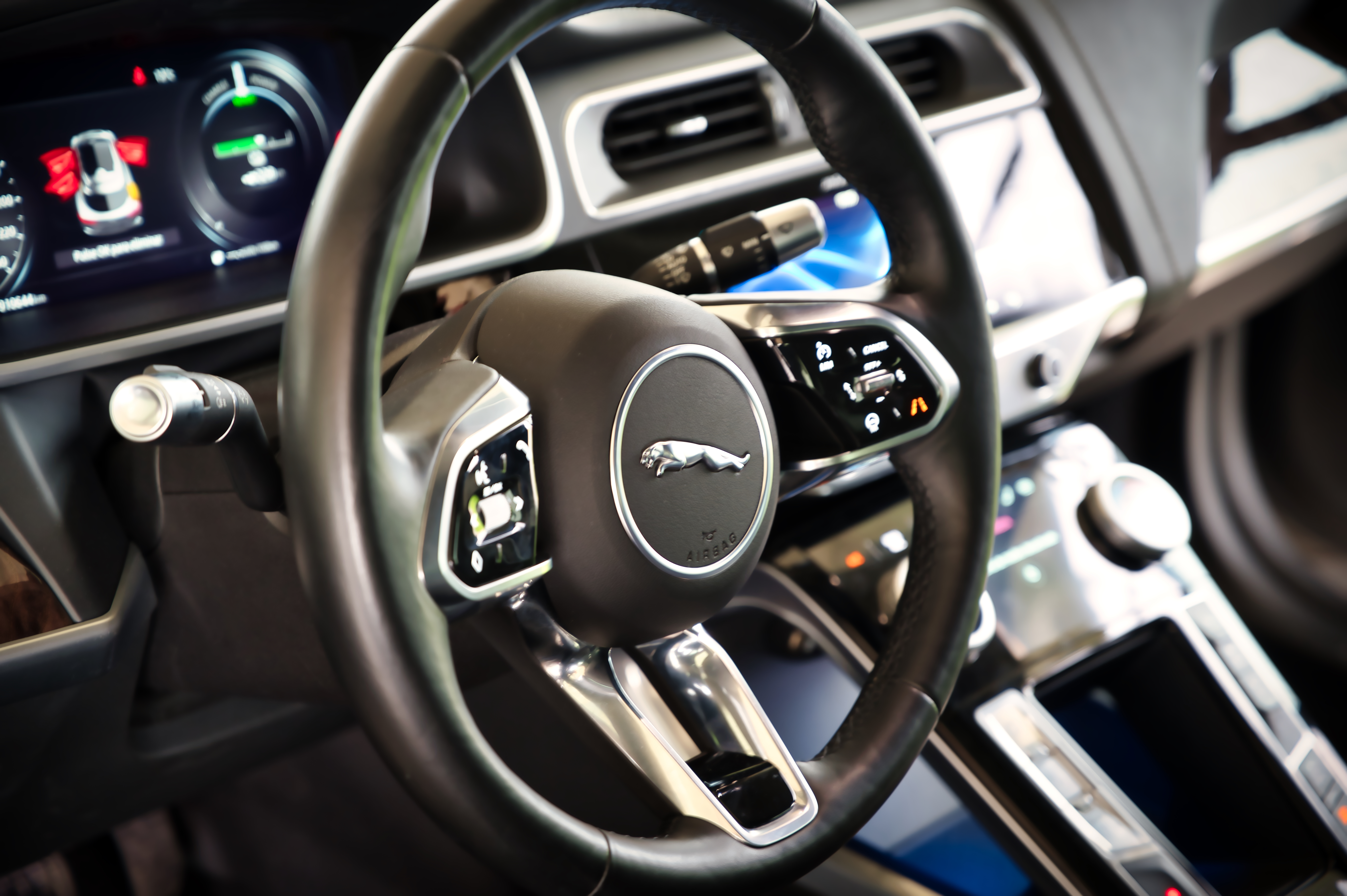 Por último, observo el Jaguar i-Pace y lo primero que pienso es que no se si realmente es un SUV, aunque tampoco es un sedán ni un coupé, realmente me confunde su diseño, aunque debo reconocer que de todos es el que mas deportivo parece, tiene una toma de aire en el cofre que según nos dicen si sirve de algo. Por dentro un Virtual Cockpit que se ve muy bien y un par de pantallas en la consola central que la verdad dejan mucho que desear, son lentas y de resolución media, no se de pronto no me siento en un auto tan Premium.